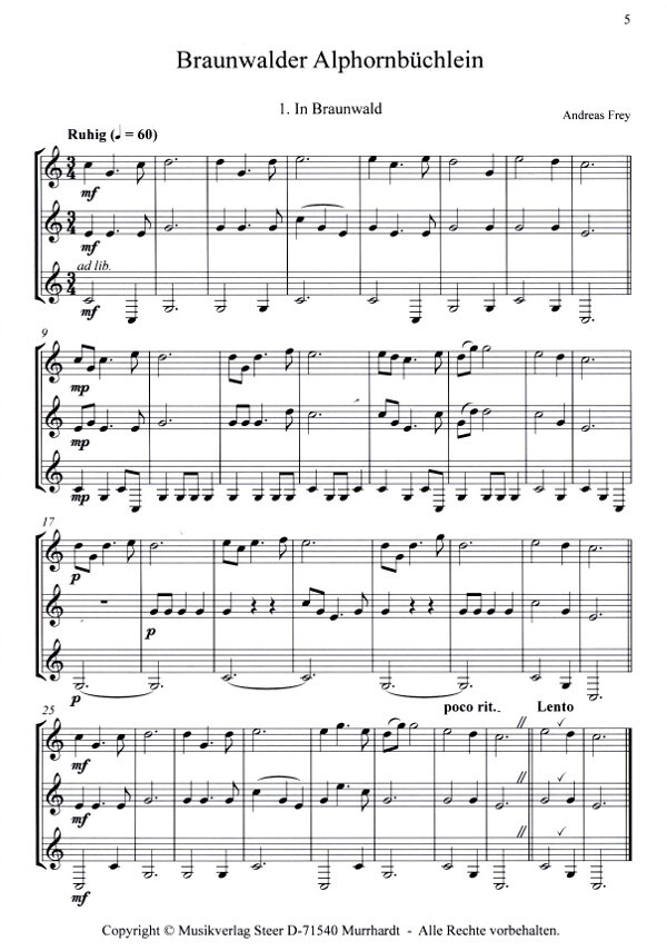 Braunwalder Alphornbüchlein 23 Stücke für 3 Alphörner