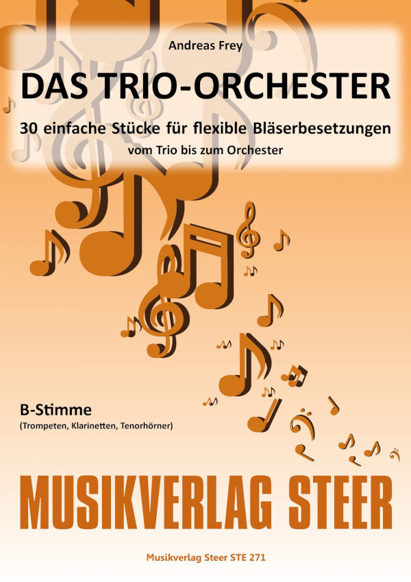Das Ziel vom Komponisten Andreas Frey ist es, das Ensemblespiel in unterschiedlichsten Besetzungen zu fördern. Der Titel Trio-Orchester besagt schon, dass es auf einem dreistimmigen Satz basiert, der sowohl als Trio, als auch in Orchesterbesetzung klingt. Diese Sammlung eignet sich für den Einzel- und Gruppenunterricht und insbesondere für Ensembles unterschiedlichster Zusammensetzung. Alle Instrumentalstimmen sind kompatibel und können beliebig gemischt werden. Besonders geeignet ist die Sammlung für Trompeten, Posaunen, Euphonium, Tenorhorn, Tuba, Klarinetten und Altsaxophone. Für das Orchesterspiel und Bläserklassen hat Andreas Frey die Sammlung um Flöten und Hörner erweitert, auch wenn die Tonarten und Lagen für diese Instrumente im Anfängerbereich nicht ideal sind. Eine Schlagzeugausgabe mit Schlagzeug-, Perkussion- und Glockenspielstimmen vervollständigt das Orchester. Im Bläserklassenunterricht kann so jede Instrumentengruppe das Stück komplett spielen und gerade die tiefen Instrumente werden nicht auf oft langweilige Bass-Stimmen festgelegt.