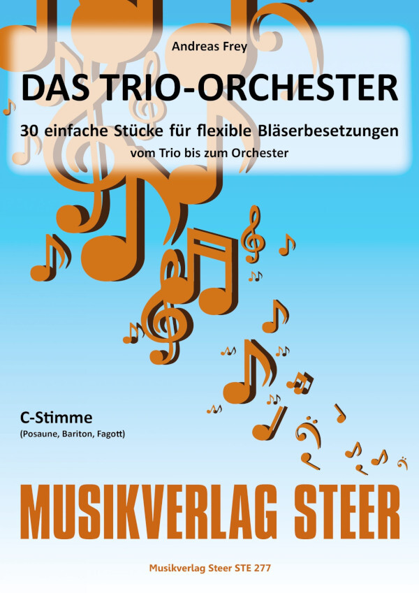 Das Ziel vom Komponisten Andreas Frey ist es, das Ensemblespiel in unterschiedlichsten Besetzungen zu fördern. Der Titel Trio-Orchester besagt schon, dass es auf einem dreistimmigen Satz basiert, der sowohl als Trio, als auch in Orchesterbesetzung klingt. Diese Sammlung eignet sich für den Einzel- und Gruppenunterricht und insbesondere für Ensembles unterschiedlichster Zusammensetzung. Alle Instrumentalstimmen sind kompatibel und können beliebig gemischt werden. Besonders geeignet ist die Sammlung für Trompeten, Posaunen, Euphonium, Tenorhorn, Tuba, Klarinetten und Altsaxophone. Für das Orchesterspiel und Bläserklassen hat Andreas Frey die Sammlung um Flöten und Hörner erweitert, auch wenn die Tonarten und Lagen für diese Instrumente im Anfängerbereich nicht ideal sind. Eine Schlagzeugausgabe mit Schlagzeug-, Perkussion- und Glockenspielstimmen vervollständigt das Orchester. Im Bläserklassenunterricht kann so jede Instrumentengruppe das Stück komplett spielen und gerade die tiefen Instrumente werden nicht auf oft langweilige Bass-Stimmen festgelegt.