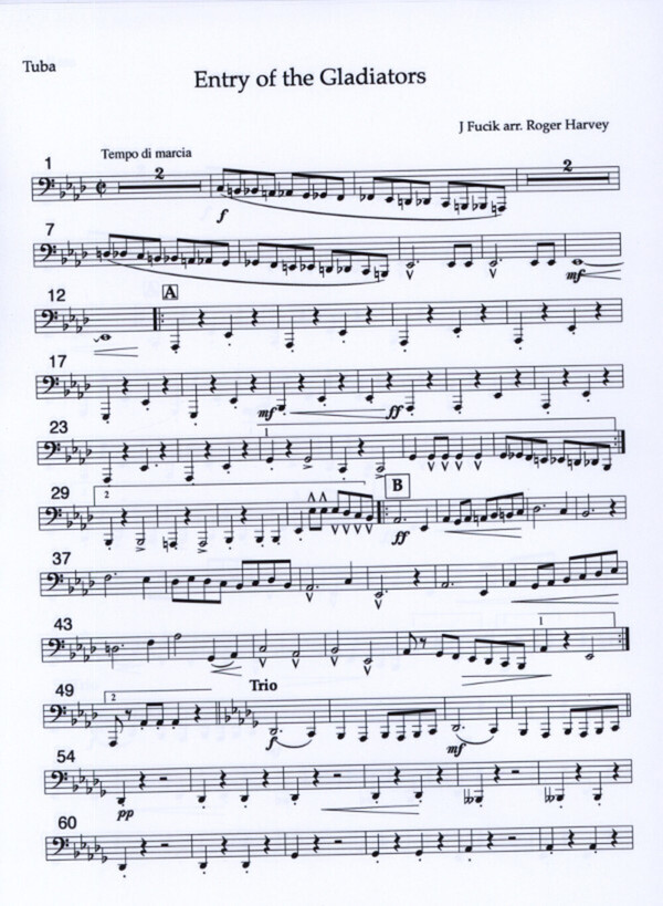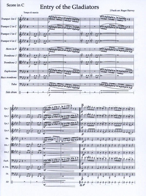 für 4 Trompeten Horn 2 Posaunen Euphonium Bassposaune Tuba + Schlagwerk (Side drum / suspended cymbal)
