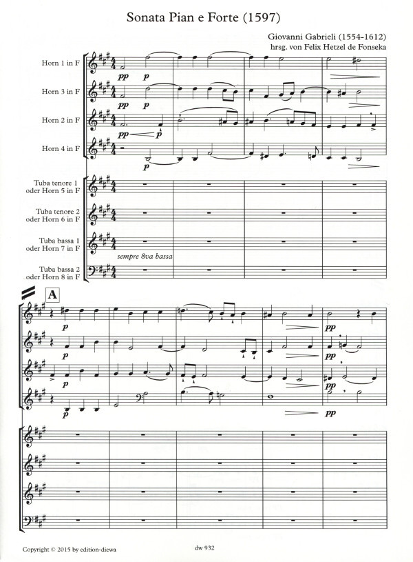 oder 4 Hörner in F und 4 Wagnertuben (in F notiert) oder 4 Hörner in F und 4 Posaunen (3.+4 Posaunen alternativ mit Bassposaune oder Tuba)