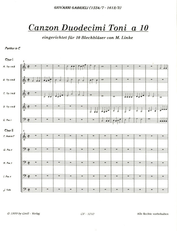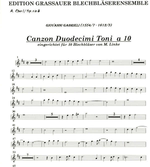 für 4 Trompeten in B/C Horn in F (Trompete in B/C/Flügelhorn) 4 Posaunen + Tuba Venezianische Mehrchörigkeit