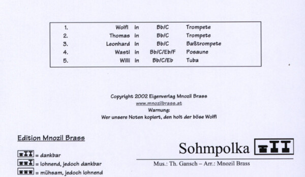 aus der Mnozil Brass-Reihe für 2 Trompeten in B/C Baßtrompete in B/C Posaune in B/C/F/Es + Tuba in C/B/Es