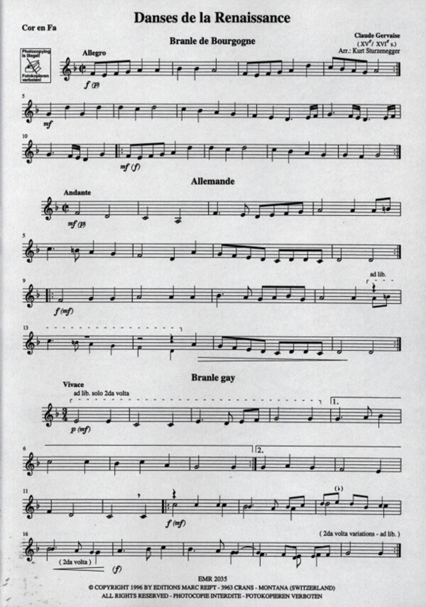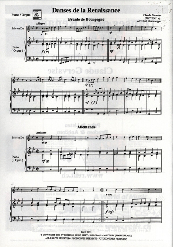 Verlag: Editions Marc ReiftStil: Barock / RenaissanceAusgabe: NotenArt-Nr.: K21119 / EMR2035K Level: (2)