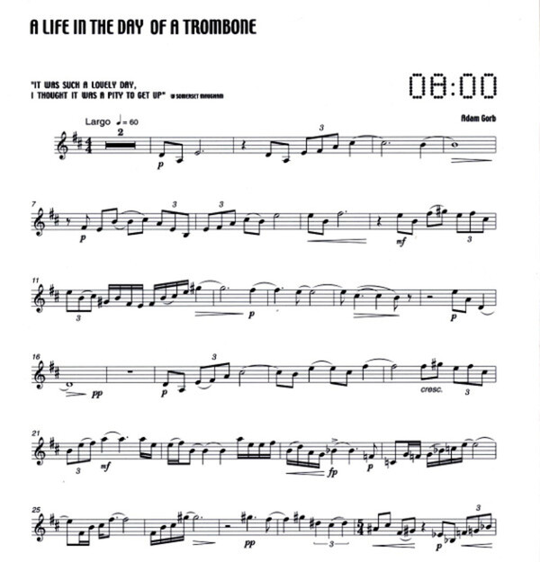 ("08:00 It Was Such A Lovely Day, I Thought It Way A Pity To Get Up - 10:45 I Like Long Walks, Espacially When They Are Taken By People Who Annoy Me - 14:00 Seeing Is Deceiving, It's Eating That's Believing - 16:50 Well, We Can't Stand Aroung Here Doing Nothing, People Will Think We're Workmen - 19:30 Without Music, Life Would Be A Mistake - 23:59 No Civilised Person Goes To Bed The Same Day He Gets Up", Stimme im Violinschlüssel)