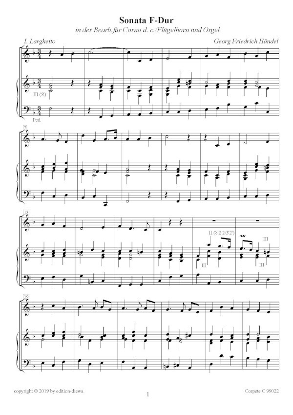 für Corno da caccia (Flügelhorn) in B/C + Orgel