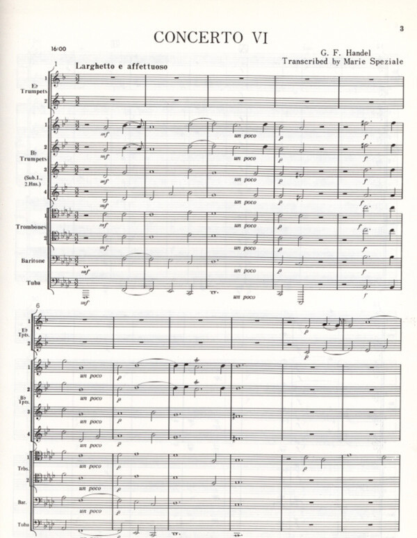 original für Streicher op. 6 Nr. 6 in G für 2 Trompeten in Es 4 Trompeten in B 2 Hörner 2 Posaunen Euphonium + Tuba