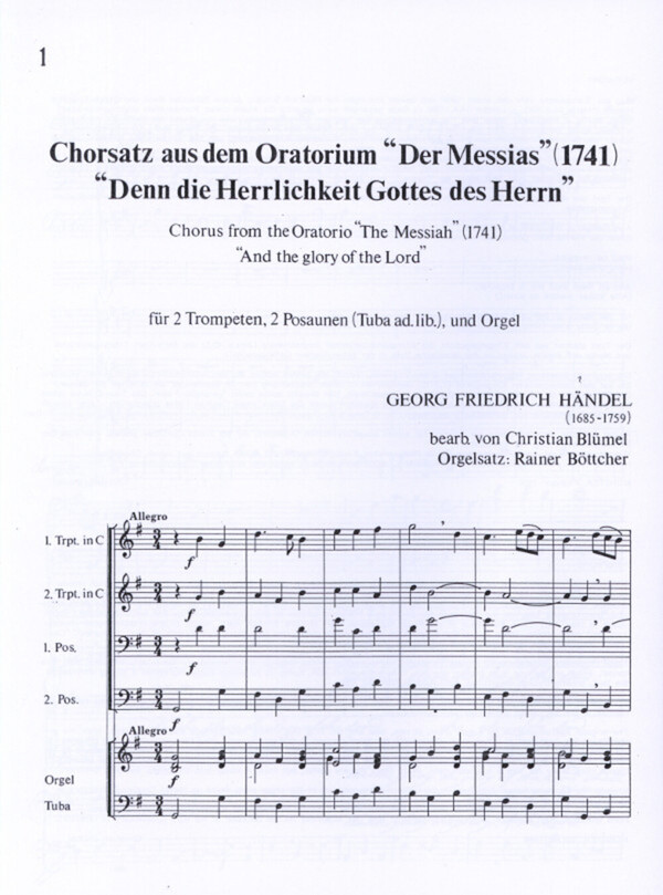 für 2 Trompeten, 2 Posaunen, Tuba ad lib. + Orgel