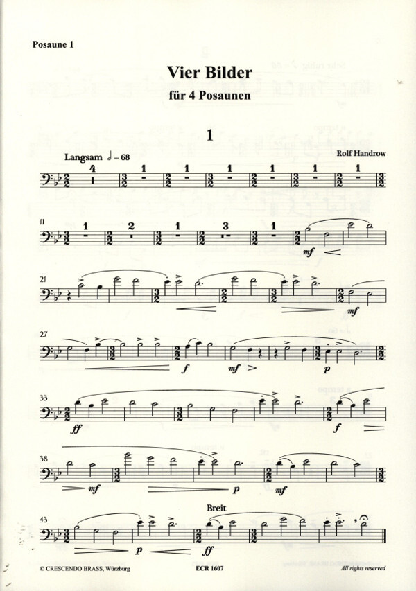Partitur Stimmen für Posaunen 1 und 2 im Baßschlüssel und Tenorschlüssel Stimmen für Posaunen 3 und 4 im Baßschlüssel