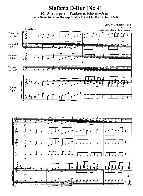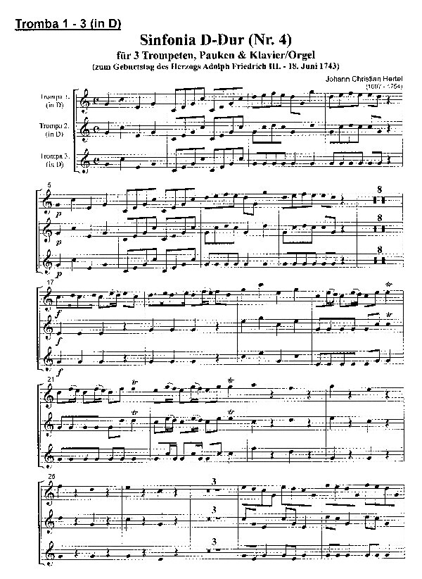 für 3 Trompeten in D, Pauken + Orgel (Klavier)