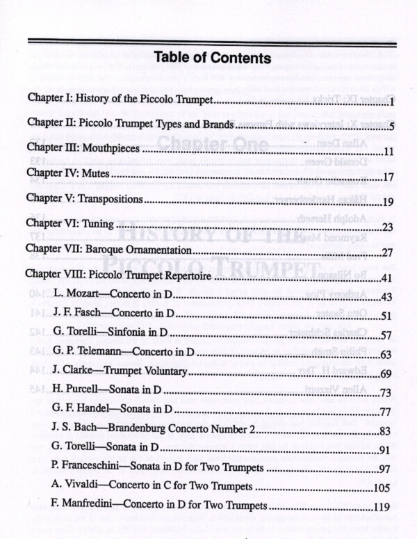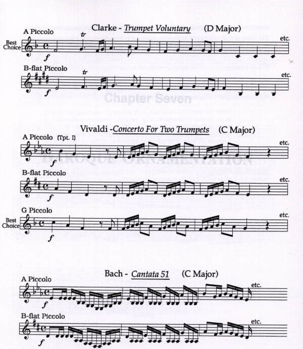 Kapitel 8: Das Repertoire der Piccolo Trompete (Notenbeispiele zahlreicher Kompositionen von Vivaldi bis Mozart)