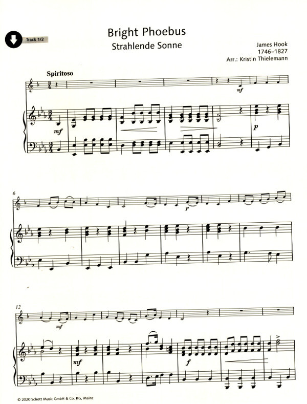 Ein Beitrag zur Erschließung der klassischen Epoche für die Trompete: Die von Kristin Thielemann arrangierten Spielstücke und Sonaten von James Hook (17461827) im mittleren Schwierigkeitsgrad eignen sich besonders gut für den Unterricht sowie für Vorspiele und Wettbewerbe wie Jugend musiziert. Einige Lieder von Hook wurden als Spielstücke bearbeitet und können gut als Einstieg in dieses Repertoire dienen. Fortgeschrittenere SpielerInnen können sich an die Sonaten wagen. Neben der oft gespielten Sonate op. 99/3 werden auch unbekanntere Sonaten durch die Wahl von gut liegenden Tonarten für die Trompete interessant.
