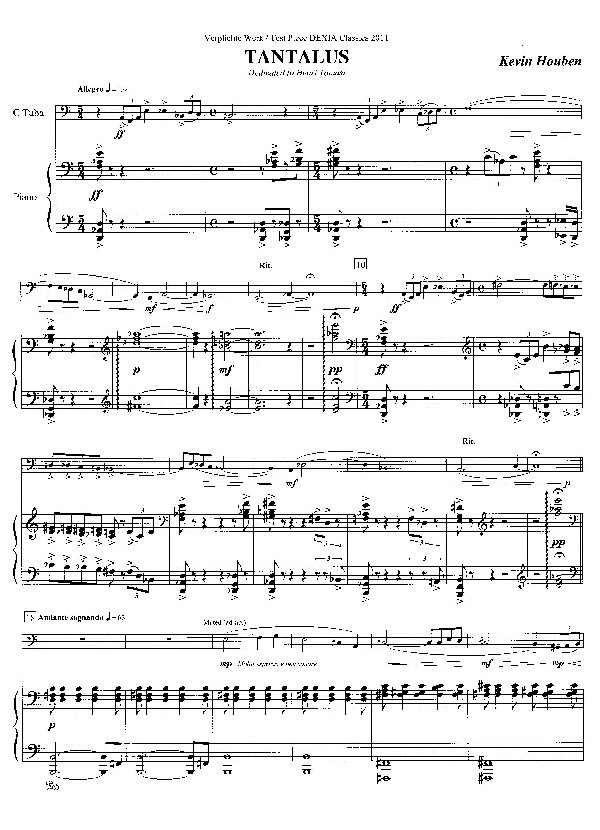 Als Tantalus, eine Figur aus der griechischen Mythologie, die Götter zu einem Bankett lud, servierte er ihnen Zeus' Sohn Pelops, der er in Stücke hatte schneiden lassen. Auf diese Weise wollte er herausfinden, ob seine Gäste tatsächlich allwissend waren. Der Begriff "Tantalusqualen" geht auf die Bestrafung des Tantalus zurück; das geflügelte Wort steht für sehr begehrte, aber unerreichbare Dinge. Kevin Houben ließ sich von der Geschichte des Tantalus zu dieser Komposition inspirieren.