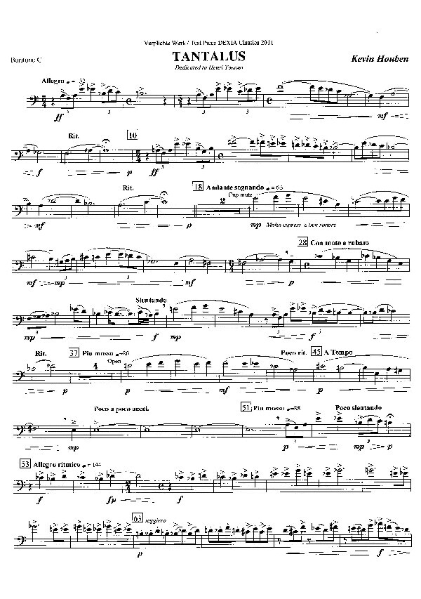 Als Tantalus, eine Figur aus der griechischen Mythologie, die Götter zu einem Bankett lud, servierte er ihnen Zeus' Sohn Pelops, der er in Stücke hatte schneiden lassen. Auf diese Weise wollte er herausfinden, ob seine Gäste tatsächlich allwissend waren. Der Begriff "Tantalusqualen" geht auf die Bestrafung des Tantalus zurück; das geflügelte Wort steht für sehr begehrte, aber unerreichbare Dinge. Kevin Houben ließ sich von der Geschichte des Tantalus zu dieser Komposition inspirieren.