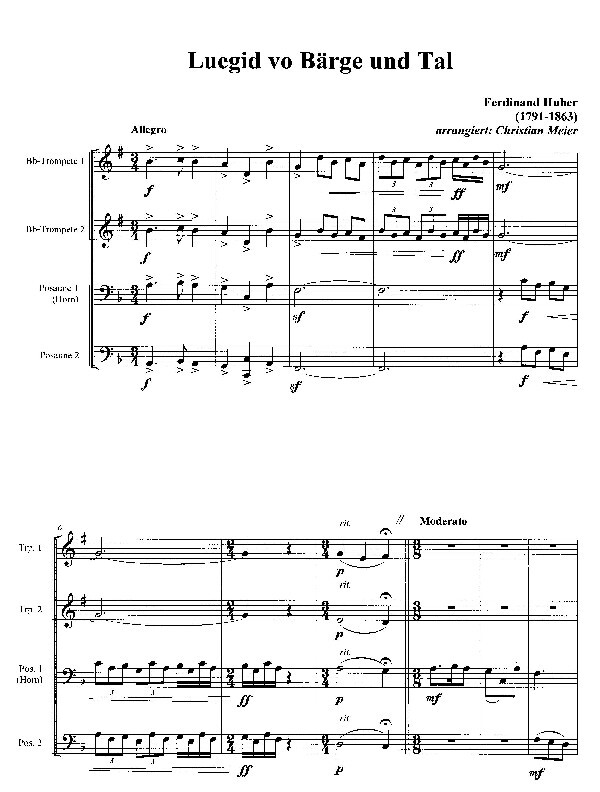für 2 Trompeten in B/C, Posaune in C/B (Horn in F/Es) + Posaune in C/B
