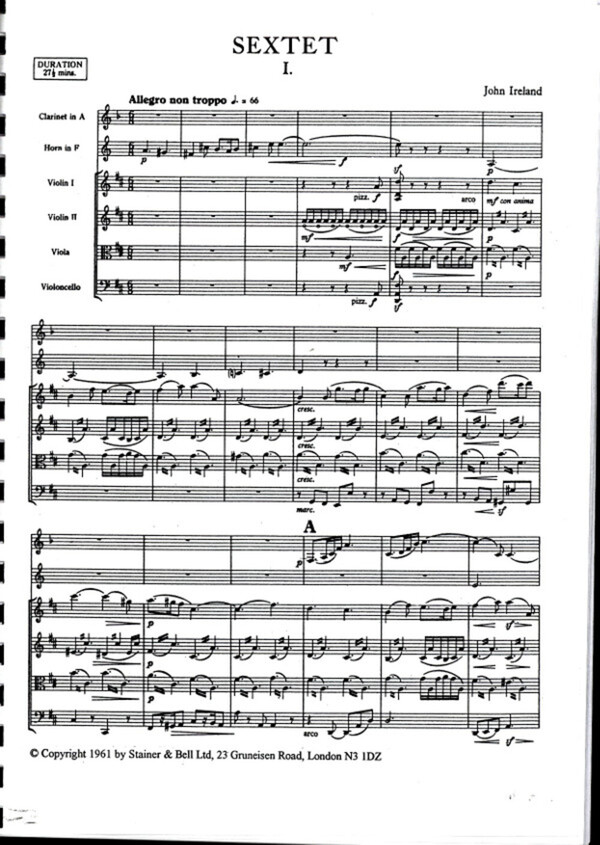 1961 komponiert 4 Sätze 28 Min. für Horn in F Klarinette in A + Streichquartett (2 Violinen, Viola + Violoncello)