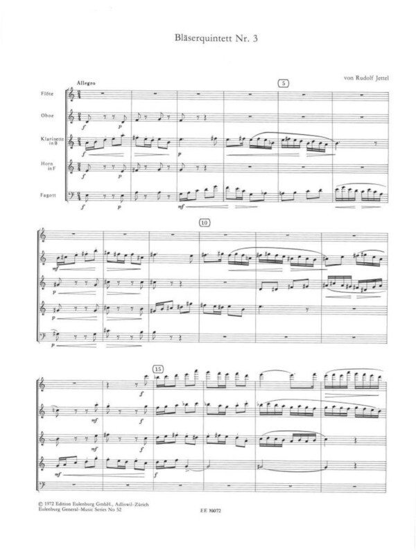 für Flöte, Oboe, Klarinette, Horn + Fagott