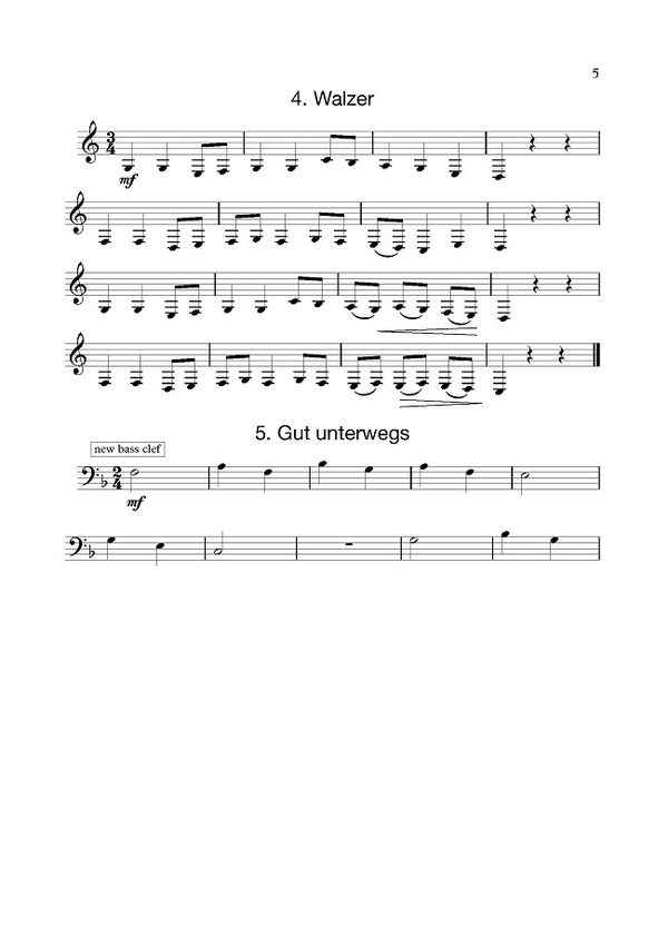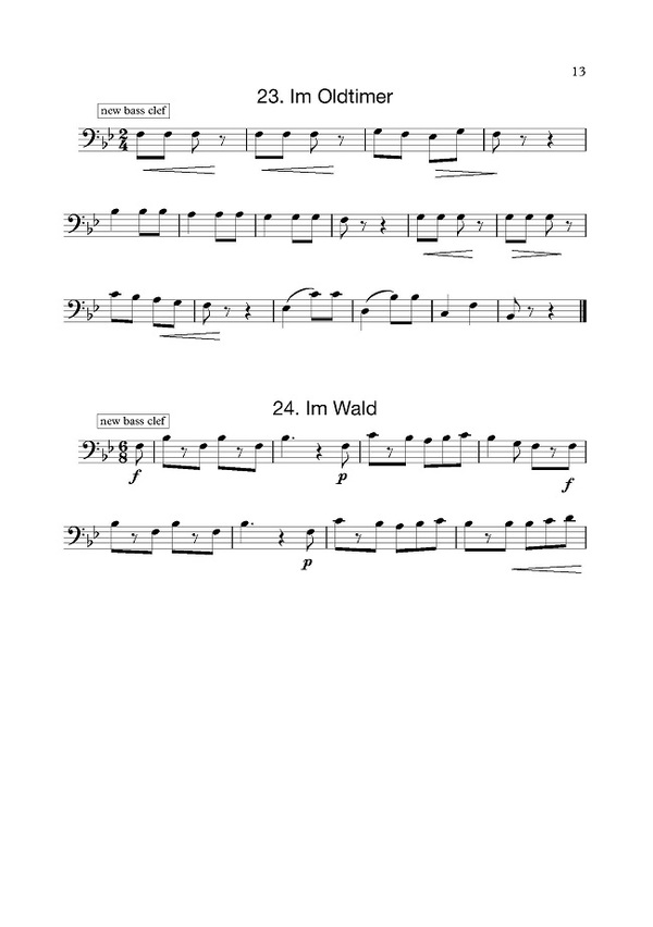interessante Stücke für tiefes Horn zum Erlernen der verschiedenen Baßschlüssel und der tiefen Lage.