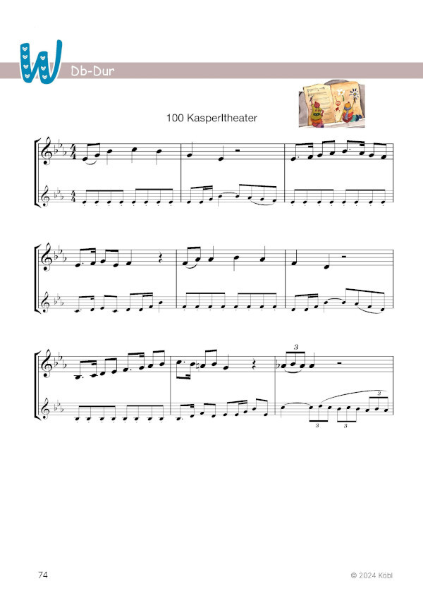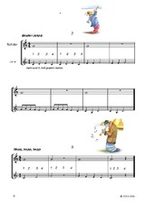 Auch kann mit den ersten Tönen schon ein gemeinsames Musizieren bekannter Melodien zusammen mit dem Lehrer stattfinden.