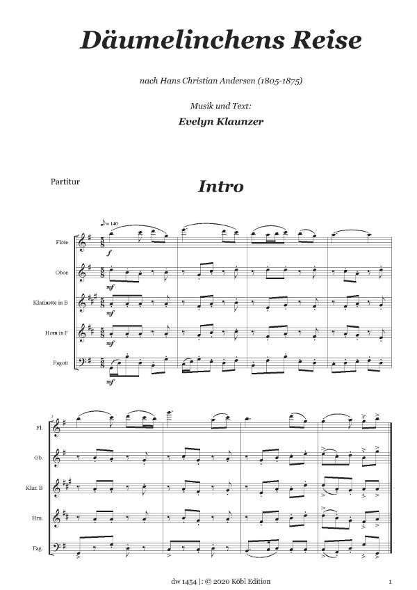 Flöte, Oboe, Klarinette in B, Horn in F, Fagott und Sprecher