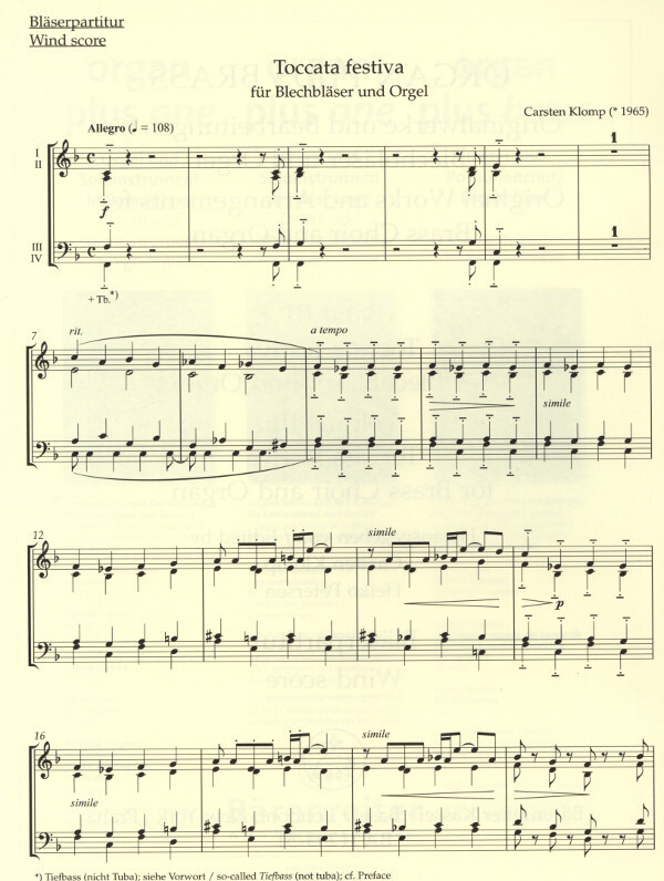 für 2 Trompeten in B/C, Posaune (Horn in F), Posaune + Orgel