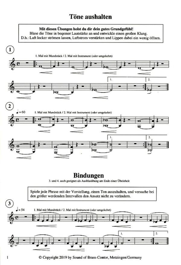 Das Einspielheft für Blechbläser Töne aushalten Bindungen Stoßen Binden & Stoßen Beispiel wie spiele ich mich heute ein