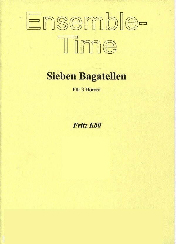 Bei den SIEBEN BAGATELLEN für drei Hörner kommt der Leitgedanke für die Kompositionsweise Fritz Kölls besonders deutlich zum Ausdruck: mit einfachen Mitteln Hintergründiges darzustellen. Köll versteht es, mit eingeschränkten technischen Anforderungen die Mittellage des Horns auszureizen und damit gleichzeitig anspruchsvolle als auch für Schüler und Liebhaber spielbare Musik