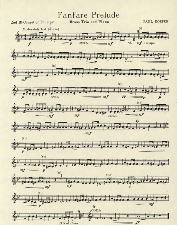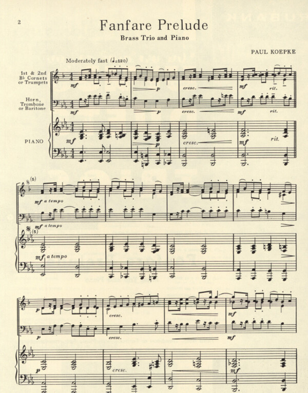 für 2 Trompeten, Posaune (Horn) + Klavier