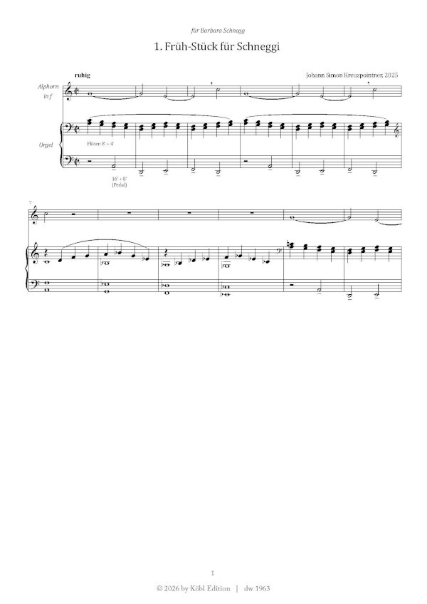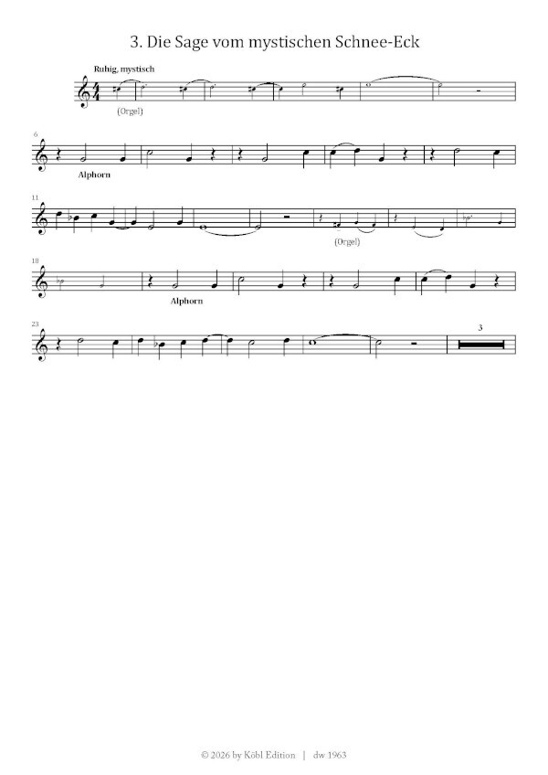 Sehr schöne moderne aber doch romantische Stücke für Alphorn und Orgel, sehr gut spielbar, höchster Ton im Alphorn e"