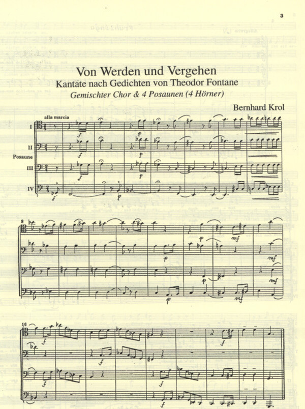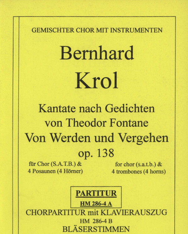 (Kantate nach Gedichten von Theodor Fontane, geb.1920, früher C 3084) Chor (SATB) + 4 Pos (Hr) MINDESTABNAHME DER CHORPARTITUR: 30 Exemplare