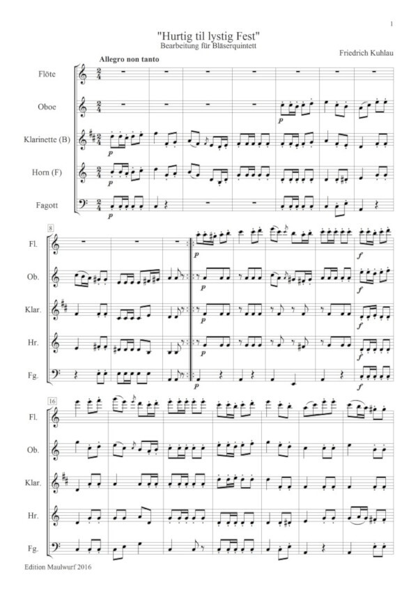 für Bläserquintett (Flöte, Oboe, Klarinette, Horn, Fagott)