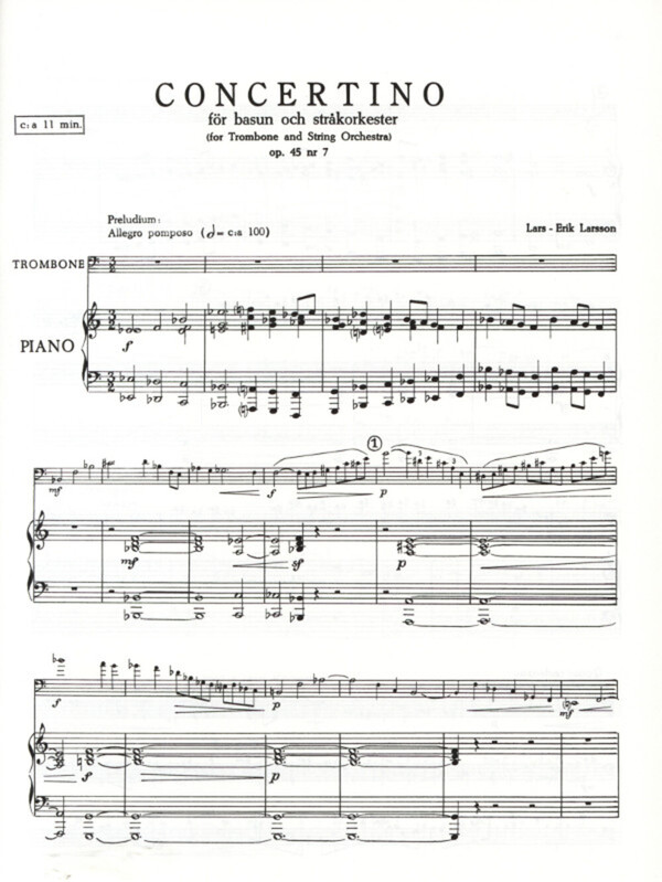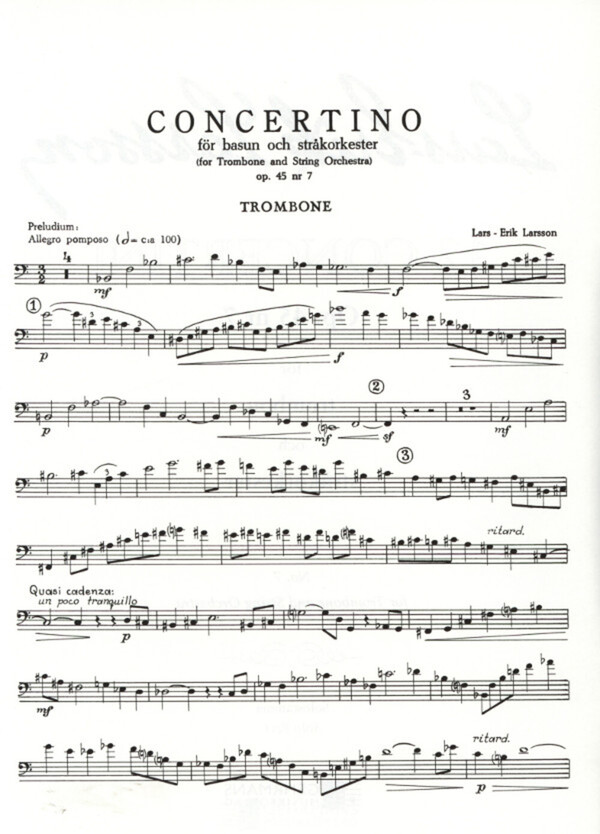 im Baßschlüssel, aber einige Stellen im Tenorschlüssel Concertino op.45,7 for trombone and strings for trombone and piano