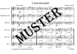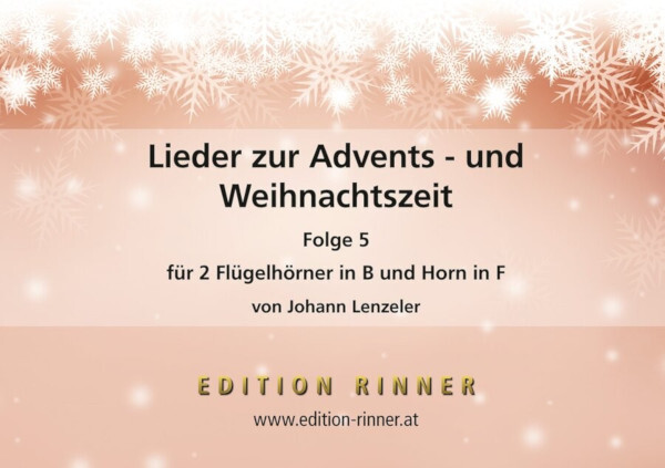 Folge 5 der Sammlung "Lieder zur Advent- und Weihnachtszeit" enthält 12 traditionelle Weihnachtslieder, hier arrangiert für zwei Flügelhörner und Horn in F von Johann Lenzeler.