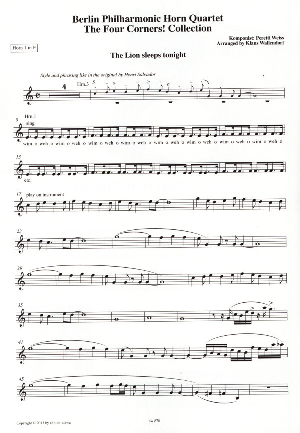 The Lion Sleeps Tonight aus der CD "Four Corners!" | Notendownload