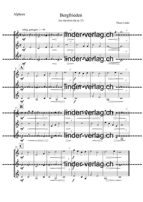 Tonumfang 1. Alphorn: e1-g2; 2. Alphorn: c1-e2; 3. Alphorn: g-g1