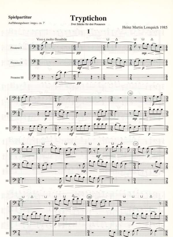 (1985, geb.1937, 3 Sätze, 7 Min., Pos 1 im Baß- und Tenorschlüssel) Spielpartitur