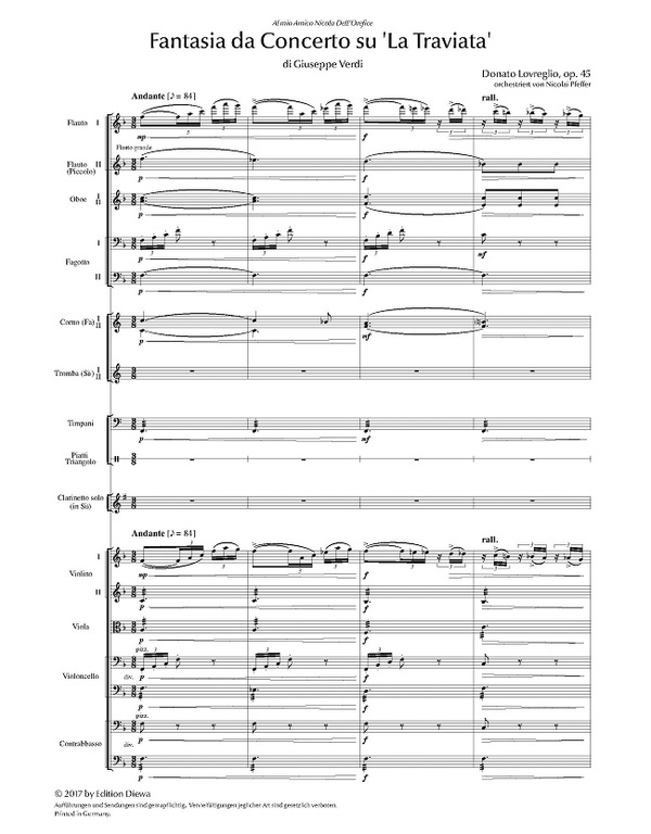 2 Flöten, 2 Oboen, 2 Fagotte, 2 Hörner in F, 2 Trompeten in B, Pauken, Percussion
