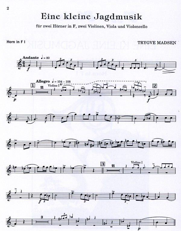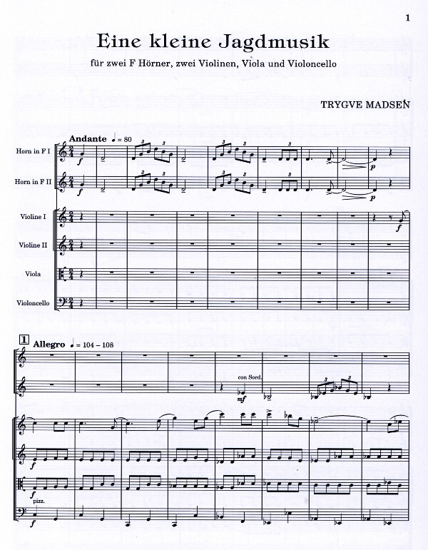 für 2 Hörner in F, 2 Violinen, Viola + Violoncello