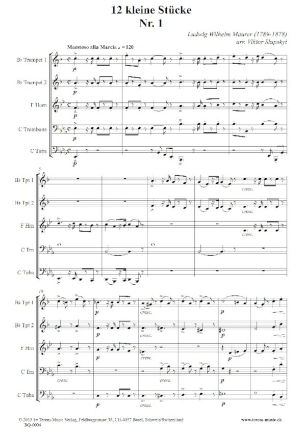 für Blechbläserquintett (2 Tromp, Horn, Pos, Tuba)