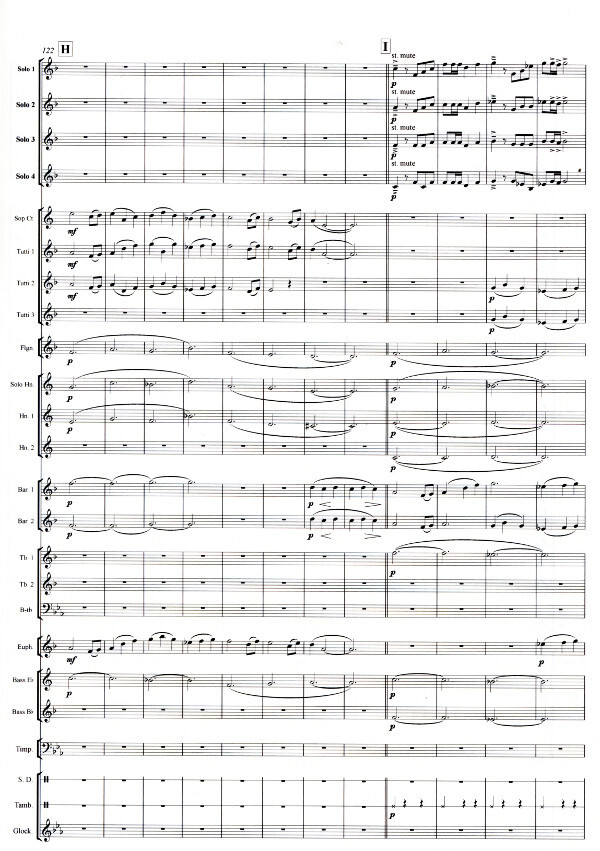 Jean-François Michel invites 4 cornet or trumpet players to play the heroic and audacious adventurers with their otherwise peaceful brass instruments. Musical pirouettes, jumping intervals or lyrical musical complicity challenge the soloists pugilistic imaginations in this exciting adventure with an appropriate accompaniment of a brass band (BIM TP336b/c) or optional wind band (BIM TP336d/e). Both versions include full sets of scores and parts.