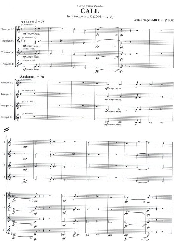 Call has specifically been composed for 8 trumpets in C to make the most out of the sound ressources of that key.