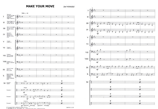 I Flöte, Oboe; Eb Flügelhorn, Klarinette 1, Sopransax, Kornett (b.b.) II Klarinette, Flügelhorn II-III, Flügel (b.b.), Altsax, Altklarinette III Horn 1+2, Englisch Hornsolo1 (b.b.), Altklarinette, Altsax ad lib. IV Horn 3+4; Horn 2 (b.b.), Bariton 1(b.b.), Altklarinette, Tenorsax ad lib V Trompete1; Kornett(b.b.)