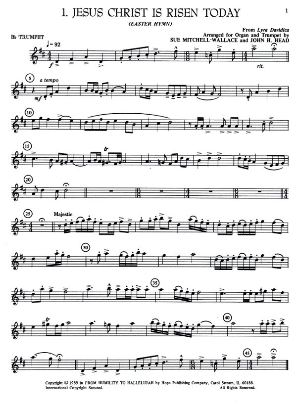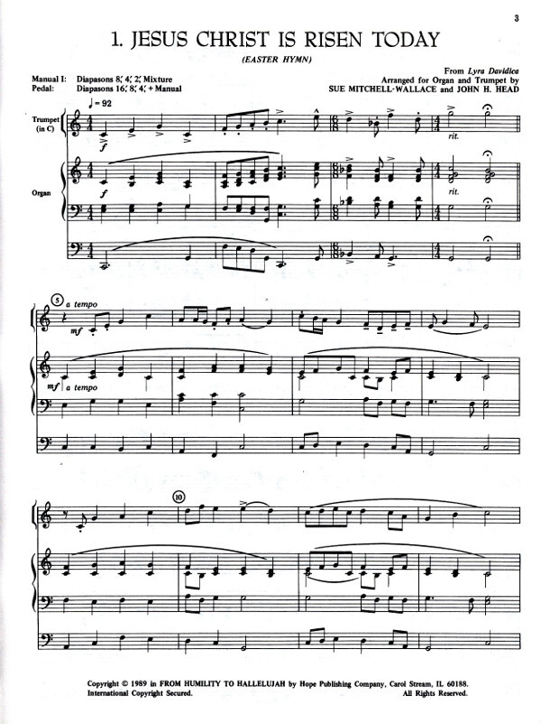 These are organ and solo trumpet pieces for the Lenten and Easter season. The folio contains a separate pull-out section for the brass player. This collection follows the successful pattern of their other books, The Classical Wedding, The Joyous Wedding, and Christmas Majesty.
