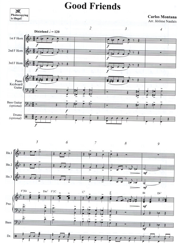 für 3 Hörner in F & Klavier (Gitarre, Bassgitarre & Drums ad libitum)