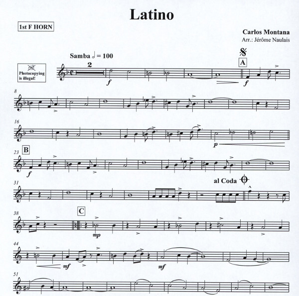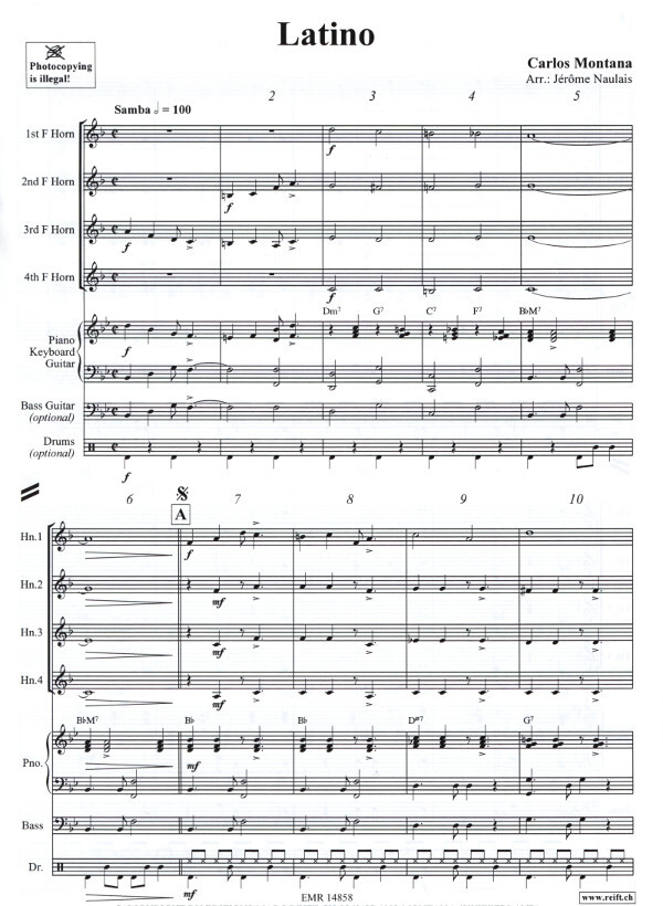 für 4 Hörner in F + Klavier/Gitarre (+ Baßgitarre, Drums ad lib.)