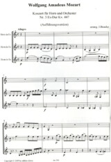 Die Version für den Unterricht kann mit 2 Hörnern gespielt werden. Dabei bleibt die Solostimme unverändert, der Lehrer kann dabei die Begleitstimme spielen, so lernt der Schüler das Werk komplett kennen, mit allen Pausen und kann gleichzeitig die Intonation trainieren.