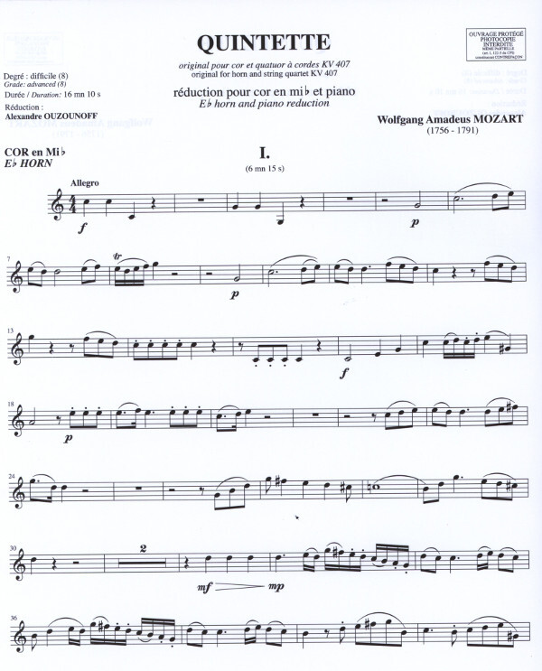 Quintett (Original Quintett für Horn und Streichquartett KV 407)