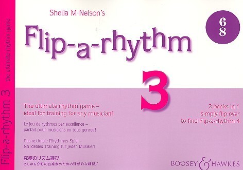 Flip-a-rhythm ist eine Sammlung von 144 Rhythmen in zwei Büchern: Drehen Sie ganz einfach Buch 4 um und Sie haben Buch 3.