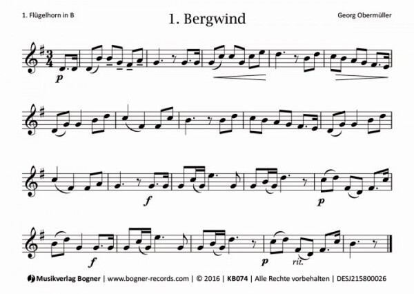 1. Flügelhorn in B, 2. Flügelhorn in B, Tenorhorn in B, Tuba in C / Zusatzstimmen: Bariton in C, 2. Bariton in B, 2. Bariton in C, Horn in F