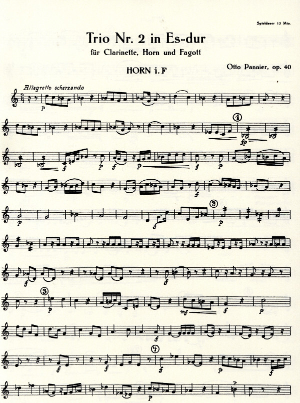 3 Sätze: Allegretto scherzando Andante quasi Menuetto Rondo, Allegretto 13 Min. nur Stimmen, keine Partitur enthalten